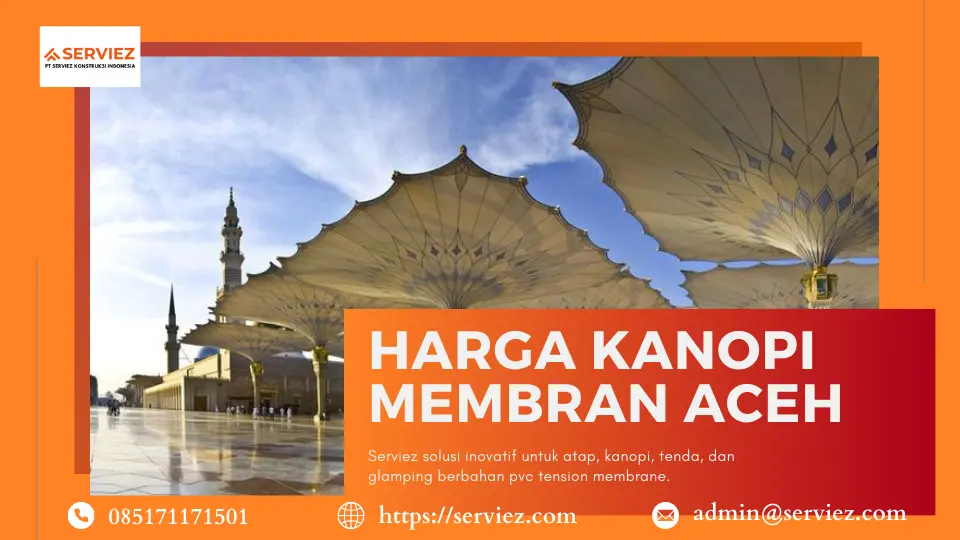 Harga kanopi membran di Aceh dapat bervariasi tergantung pada beberapa faktor. Berikut adalah beberapa aspek yang mempengaruhi harga kanopi membran: