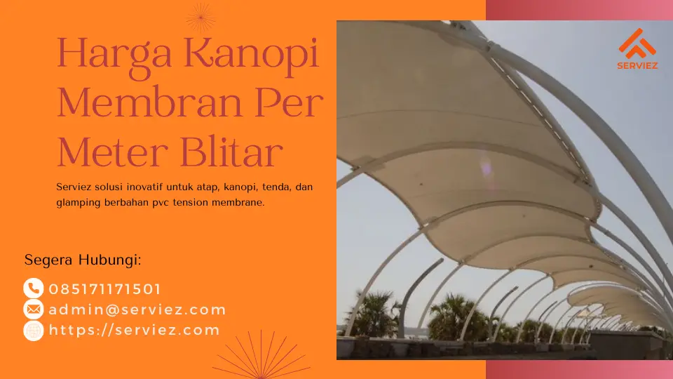 Segera hubungi kami di WhatsApp dan https://bit.ly/m/serviez untuk mendapatkan informasi lebih lanjut mengenai harga kanopi membran per meter di Blitar. Konsultasi gratis dan penawaran menarik menanti Anda. Dapatkan kanopi membran berkualitas untuk hunian atau bisnis Anda.