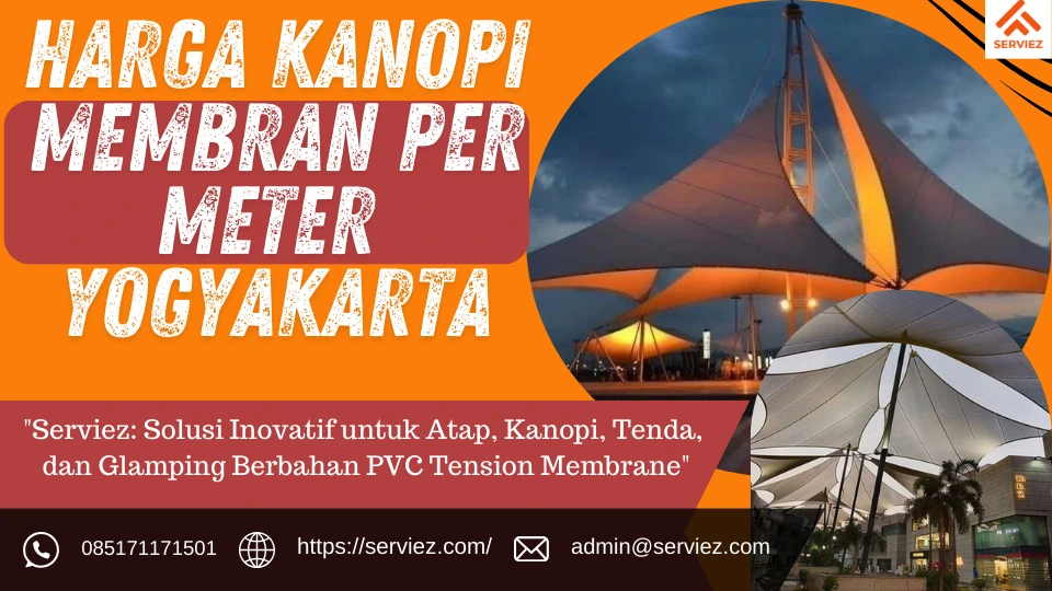 Harga kanopi membran per meter di Yogyakarta bervariasi tergantung pada bahan, desain, dan kondisi pemasangan.