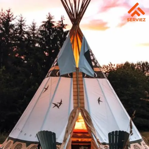 Berasal dari tenda tradisional penduduk asli Amerika, tipi berbentuk kerucut dengan rangka kayu dan penutup kain. Desainnya sederhana namun ikonis dan memungkinkan udara panas untuk naik dan keluar dari atas, membuatnya cocok untuk cuaca hangat. Tipi sering digunakan untuk glamping karena tampilannya yang klasik dan autentik.