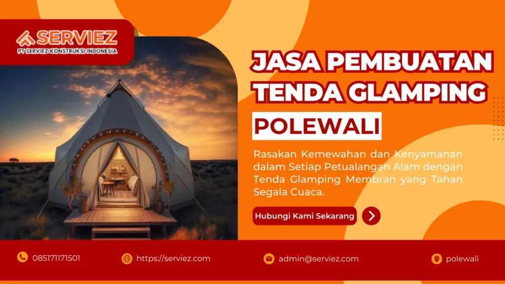 Jasa Pembuatan Tenda Glamping Polewali adalah pilihan tepat untuk Anda yang ingin menikmati pengalaman berkemah yang mewah. Dengan berbagai aplikasi, desain unik, dan material berkualitas, kami siap membantu Anda mewujudkan pengalaman berkemah yang tak terlupakan.