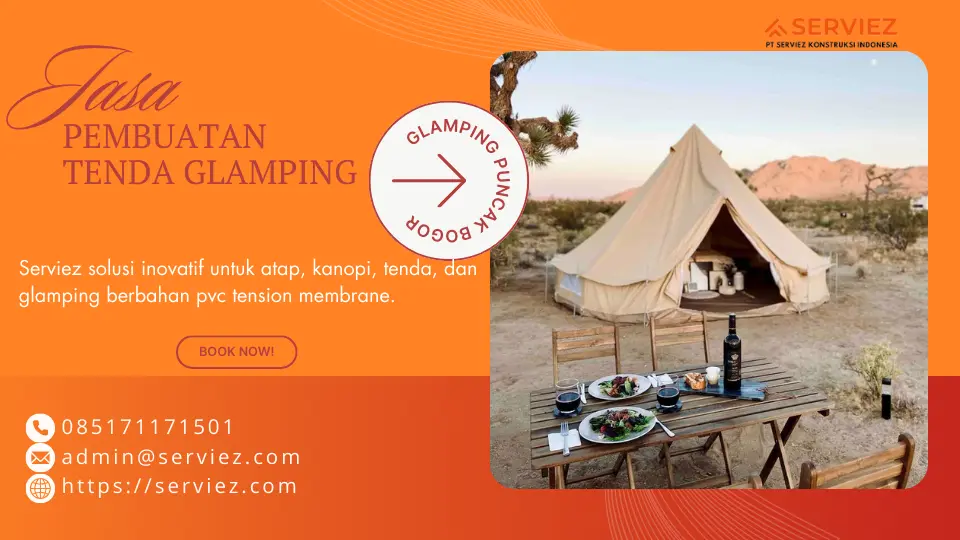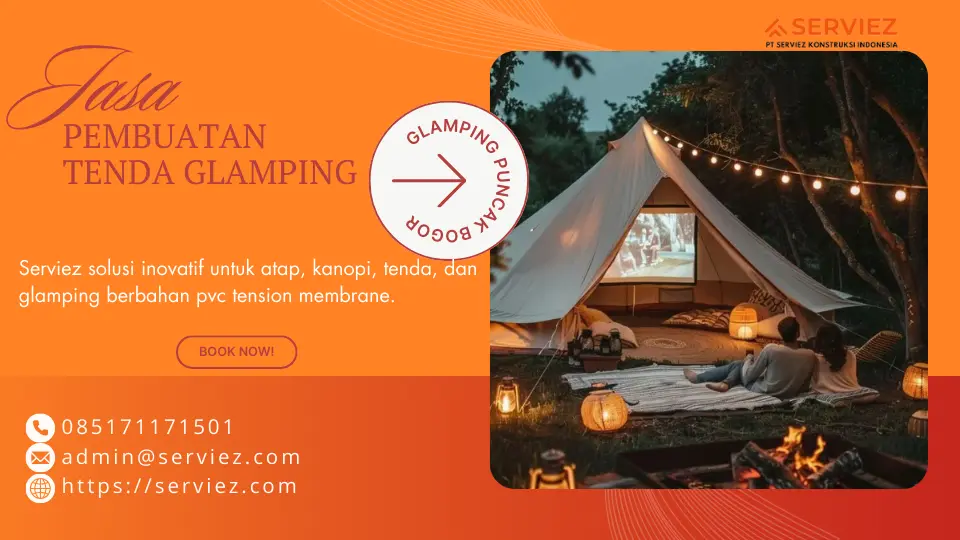 Jasa Pembuatan Tenda Glamping Puncak Bogor: Solusi Ideal untuk Bisnis Wisata Alam yang Berkelas. Puncak Bogor dikenal sebagai salah satu destinasi wisata alam paling favorit di Indonesia. Udara sejuk dan lanskap perbukitan yang indah menjadikannya lokasi ideal untuk beragam aktivitas outdoor.