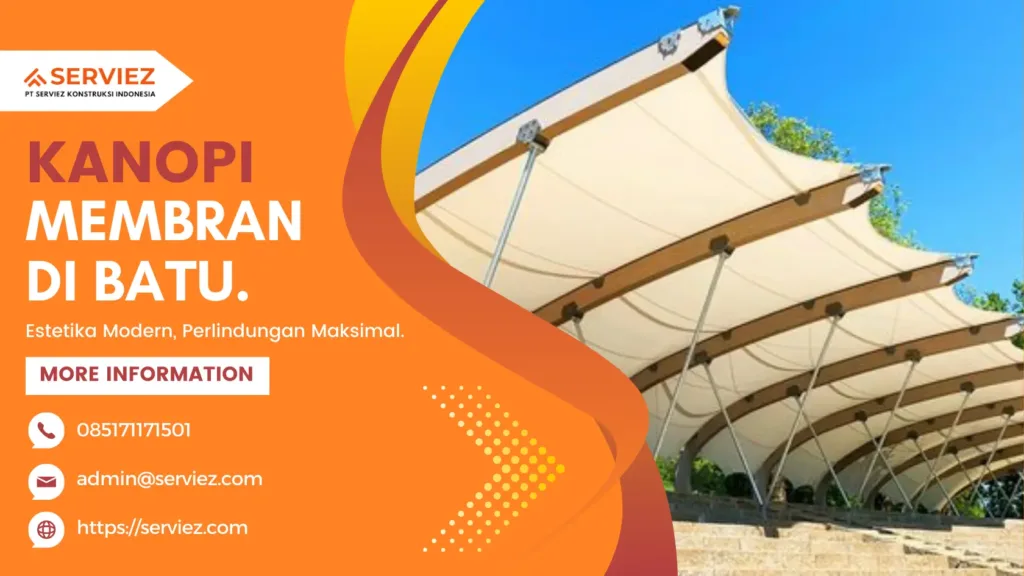 Kanopi membran mampu menahan panas, hujan. Kanopi ini semakin populer karena desainnya yang elegan dan multifungsi, menjadikannya solusi yang sempurna untuk berbagai jenis bangunan di daerah seperti Batu, yang terkenal dengan cuaca yang cukup ekstrem.