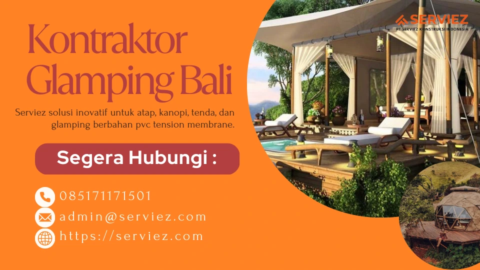 Apakah Anda sedang mempertimbangkan untuk membangun glamping di Bali? Hubungi kami di WhatsApp dan https://bit.ly/m/serviez segera untuk mendapatkan konsultasi dari kontraktor terbaik yang akan membantu Anda mewujudkan impian glamping Anda!