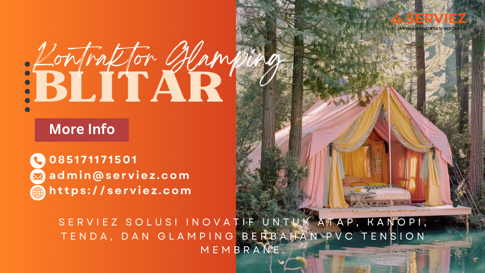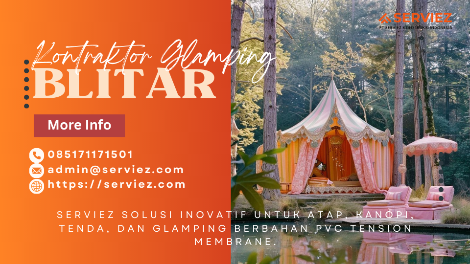 Sedang mencari kontraktor glamping profesional di Blitar? Hubungi kami di 085171171501 atau https://bit.ly/m/serviez sekarang untuk konsultasi gratis dan dapatkan penawaran terbaik untuk membangun glamping impian Anda!