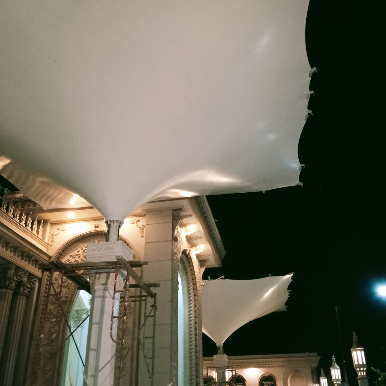 Client mau membuat 2 canopy membrane model payung seperti Masjid Nabawi di Kota Madinah tepat di sisi timur masjid. untuk menambah kapasitas tempat beribadah jamaah saat perayaan hari-hari besar islam.